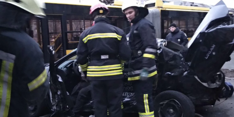 У Дніпровському районі столиці легковий автомобіль здійснив наїзд на зупинку громадського транспорту, внаслідок чого водій загинув на місці. Про це повідомляє пресслужба ДСНС у м. Київ.
