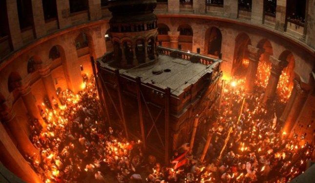 Благодатний вогонь сходить щороку напередодні Великодня в єрусалимському храмі Гробу Господнього.