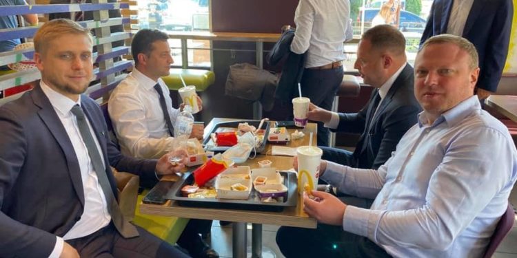 Фото глави держави, який обідає у закладі фастфуду в компанії високопосадовців, опублікував нардеп “Слуги народу” Дмитро Чорний.