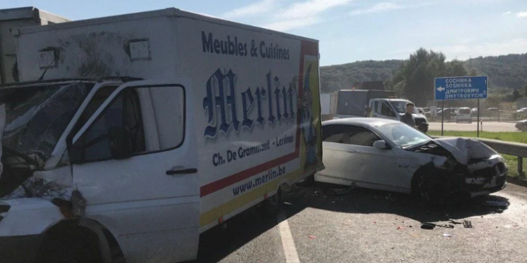 ДТП сталася близько 14:40, зіткнулись шість транспортних засобів – дві вантажівки, два мікроавтобуси та два легкових автомобілі – “БМВ” та “Рено”. Усі транспортні засоби рухались у попутному напрямку.