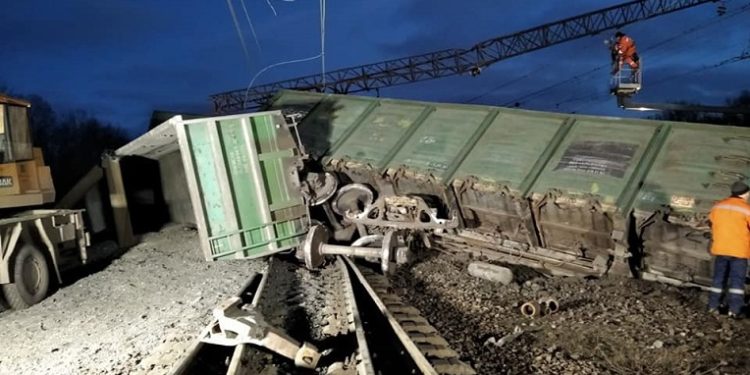За повідомленням ДСНС, о 2:05 6 лютого під час руху за маршрутом “ст. Кривий Ріг – ст. Нижньодніпровськ-Вузол” 8 вагонів вантажного потягу, що складається з 57 вагонів, зійшли з колії.