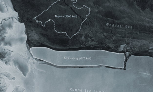 Від шельфового льодовика Ронне в Антарктиді відколовся гігантський айсберг, який отримав позначення А-76. Його площа складає 4320 квадратних кілометрів, що робить його найбільшим айсбергом у світі.