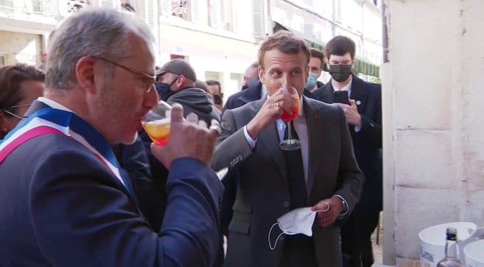 В одному з них президента Франції Еммануеля Макрона пригостили коктейлем Спрітц, і він підняв келих із традиційним французьким тостом “à ta santé!” – “За здоров’я!”