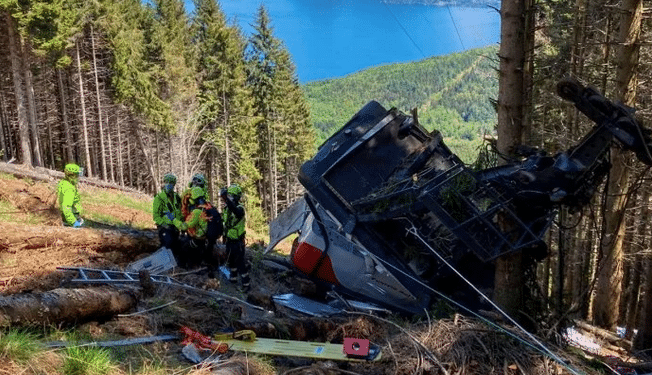 Аварія сталась в горах провінції П’ємонт і могла бути викликана обривом мотузки в найвищій частині маршруту, яка досягає висоти 1 491 метр.
