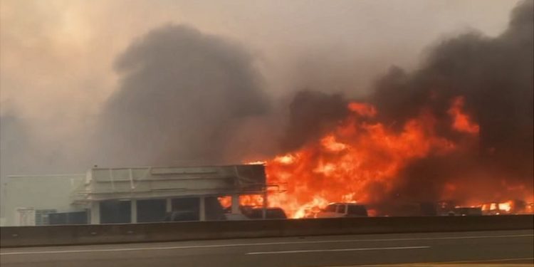При цьому швидкість вітру сягала 71 км/год, прискорюючи поширення вогню.