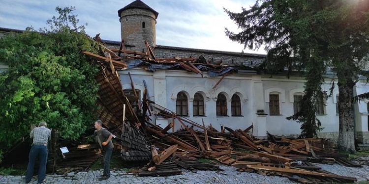 “5 серпня у Кам’янці була велика злива, яка супроводжувалася буревієм. Місто сильно постраждало, центральна частина, але думаю, найбільше питань буде про те, що сталося в нас у фортеці. Тому на випередження хочемо вам розповісти: сильний порив вітру зняв дах, дерев’яне накриття з башти Ласької. Дерев’яна конструкція пролетіла повітрям близько 25-30 метрів і впала на корпус №2, частково пошкодивши там дах”, – розповів директор музею.