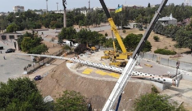 У Херсоні впав гігантський флагшток, який встановили до Дня Незалежності.