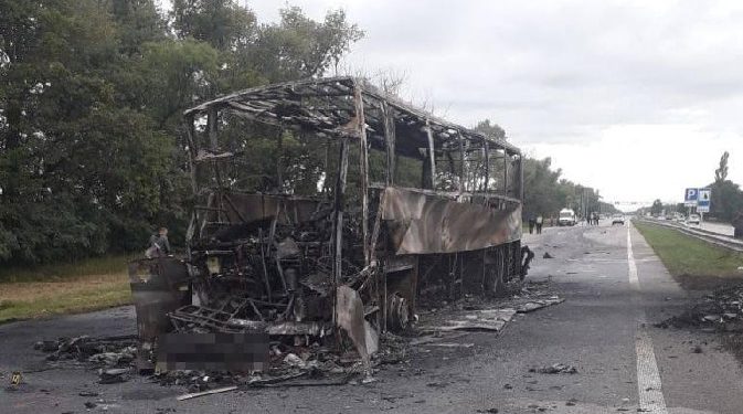 Як повідомляється на сайті обласної поліції, ДТП сталася близько 4:20 4 вересня на 177 км автодороги Київ – Чоп в Пулинській територіальній громаді. Після зіткнення з автовозом автобус загорівся.