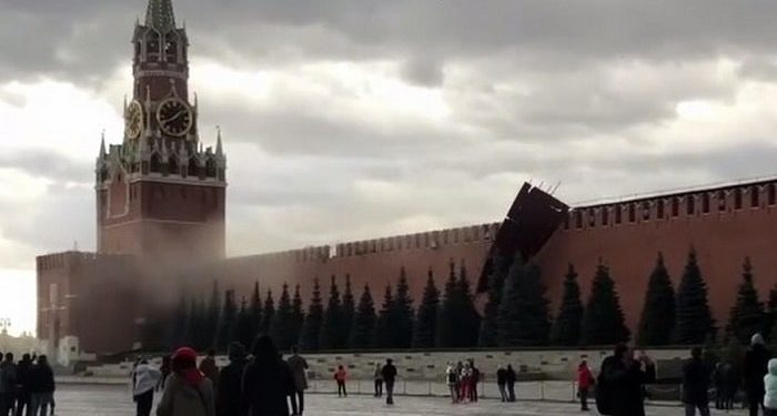 У столиці РФ Москві внаслідок сильного вітру постраждав Кремль. Після потужного пориву вітру зубець Кремлівської стіни впав разом з будівельним риштуванням.