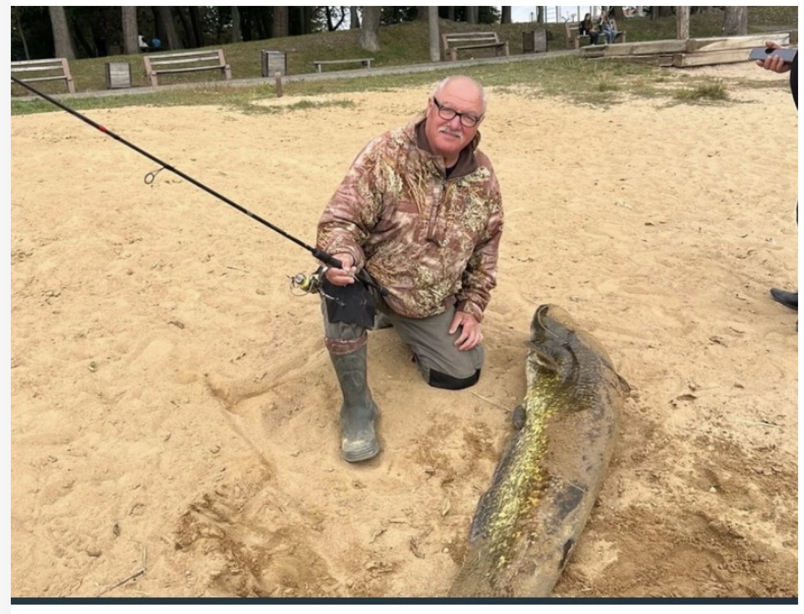 За словами чоловіка це вже другий сом-гігант впійманий у цьому році. На світлинах видно, що впіймана риба розміром майже така, як і сам рибалка.