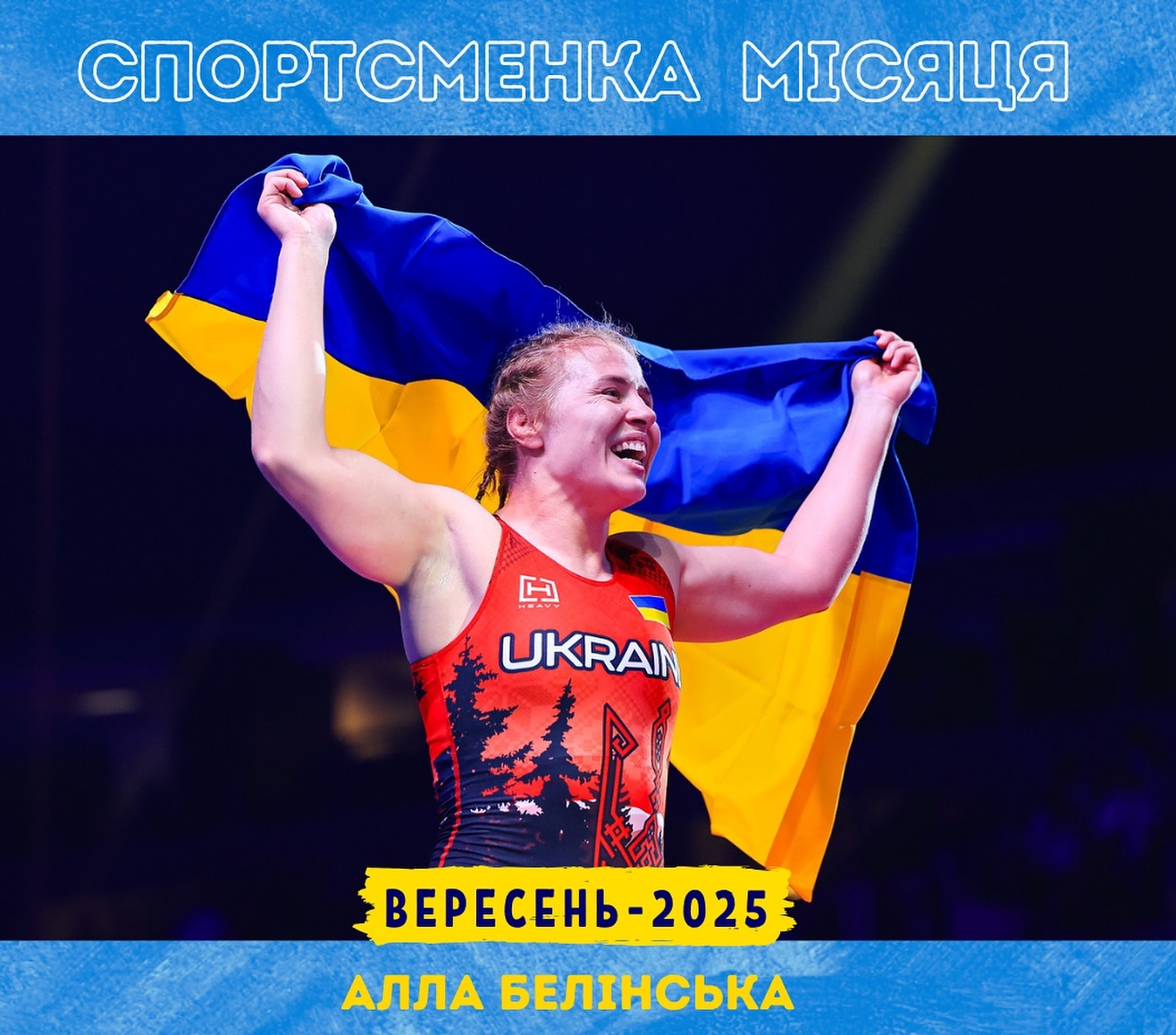 За підсумками вересня найкращою спортсменкою місяця стала Алла Белінська – чемпіонка світу з вільної боротьби у ваговій категорії до 72 кг.