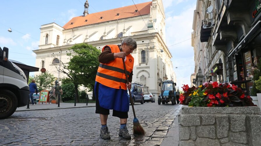 Як пояснила Галина Гладяк, голова Галицької районної адміністрації, на сьогодні у Львові не вистачає приблизно 40% двірників, відтак з огляду на об’єми робіт, який їм доводиться виконувати, зокрема ліквідовувати наслідки обстрілів, важливо підтримати їхню роботу фінансово.