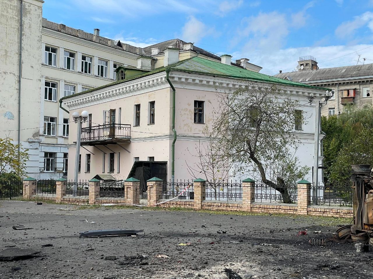 Зазнали пошкоджень і пам’ятки архітектури. Фасад Музею гетьманства, що на вулиці Спаській, посікло шрапнеллю, якою окупанти оснащують бойові частини своїх «шахедів».