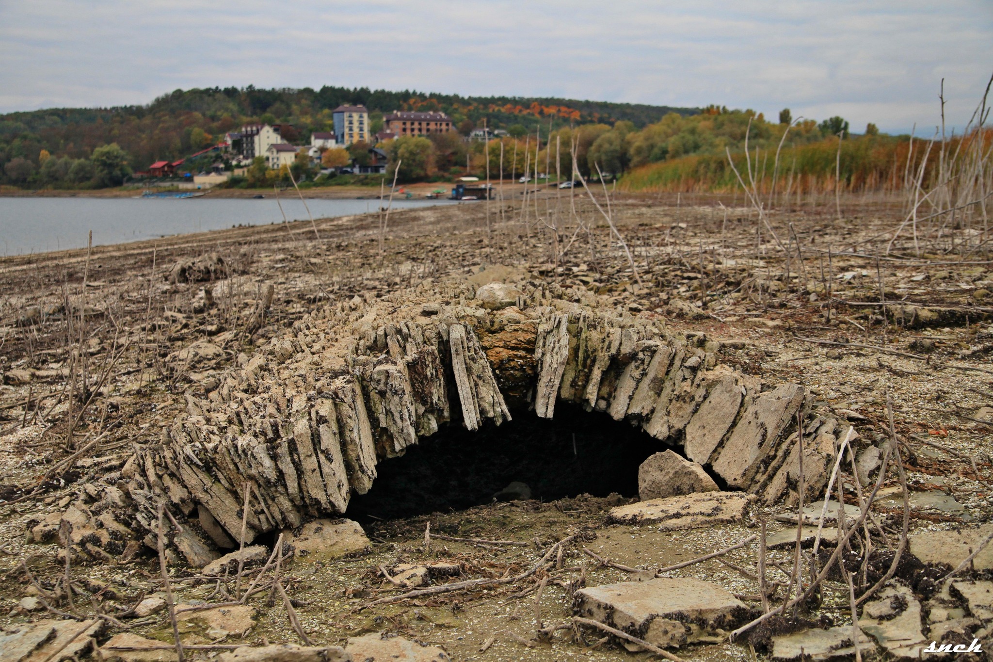 Зараз через атаки на енергетичну систему воду спускають частіше. Рівень падає, і берег показує свої таємниці. Фундаменти будинків стирчать з землі, немов кістки якогось давнього створіння. Цвинтар теж вийшов на поверхню – надгробки розкидані по схилу.