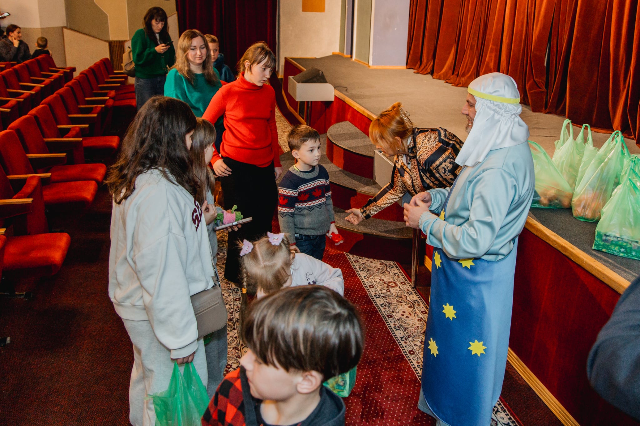 Після завершення вистави учасникам заходу вручили подарунки від благодійників. Солодкі пакунки для малечі підготували волонтери «Української команди» в Тернопільській області.