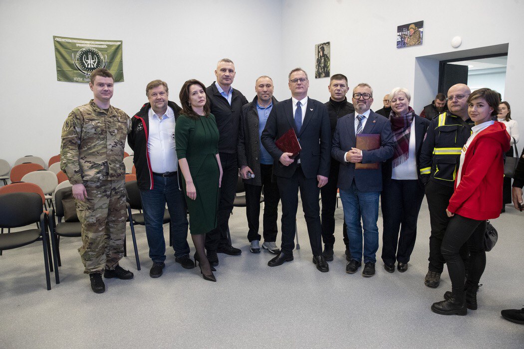 Мер столиці Віталій Кличко разом із мером міста-побратима Києва – Риги Вієстурсом Кляйнберґсом відкрив у Дарницькому районі Центр комплексної підтримки для ветеранів та їхніх родин «Київ Мілітарі Хаб», який допомогли створити міжнародні партнери, зокрема латвійські.