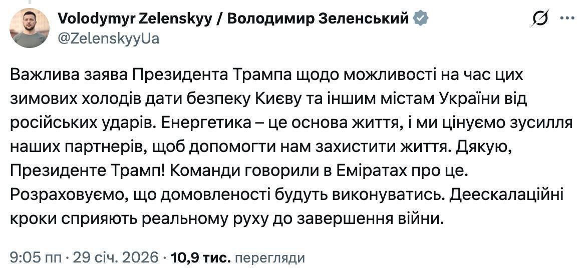 Свіжий пост Президента Зеленського став справжнім інформаційним вибухом. Мова йде про так зване «енергетичне перемир’я», яке має захистити наші міста від ударів під час зимових холодів. Це не просто чергова заява, а результат складних переговорів команд в ОАЕ.