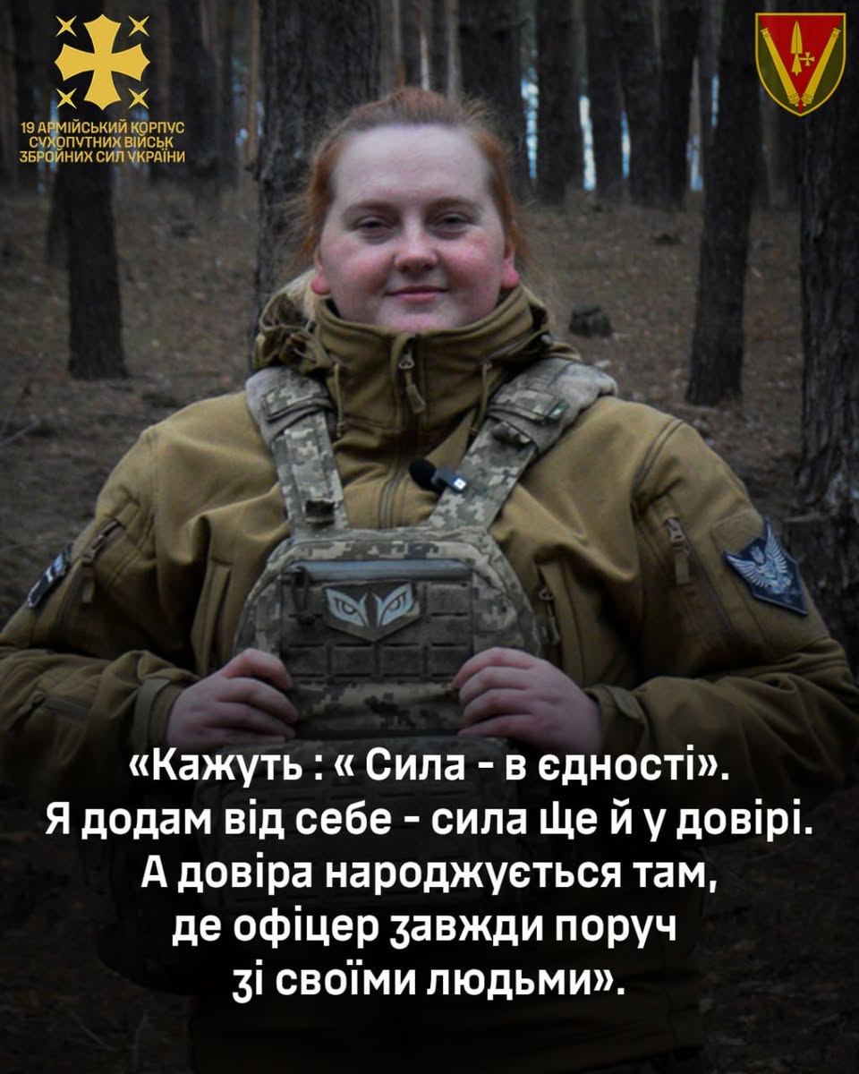 У 19-му армійському корпусі пишаються своєю офіцеркою та називають її символом незламної сили української жінки. Україна переможе, поки її боронять такі лідери!