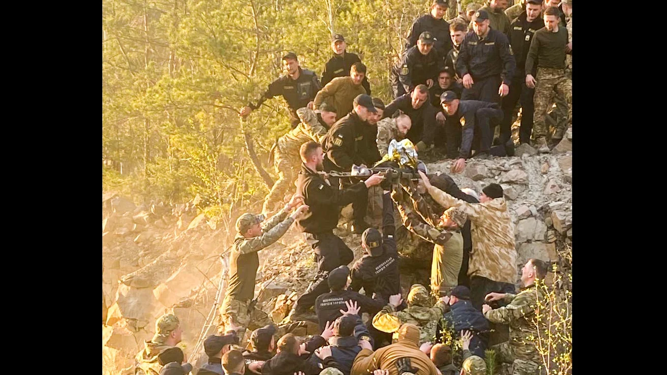 Евакуація: через складний рельєф поліцейські та рятувальники спускали дитину з виступу, утворивши «живий ланцюг».