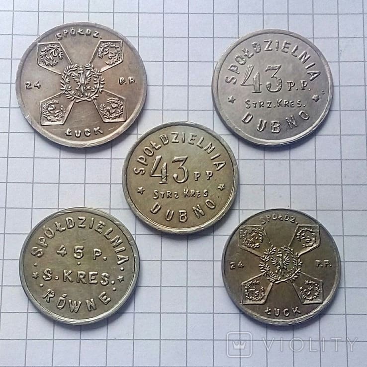 | Жетони | XIX – поч. XX ст. | Оплата праці в приватних маєтках (домініях) |