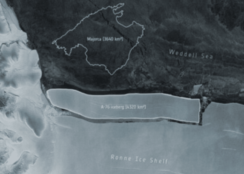 Від шельфового льодовика Ронне в Антарктиді відколовся гігантський айсберг, який отримав позначення А-76. Його площа складає 4320 квадратних кілометрів, що ...