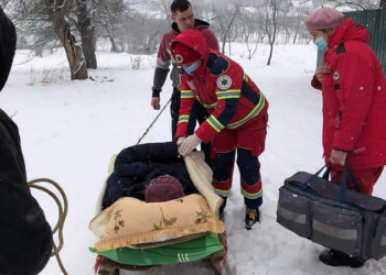 Через складні погодні умови медикам Львівського обласного центру екстреної медичної допомоги та медицини катастроф довелося саньми транспортувати хвору жінку з ...